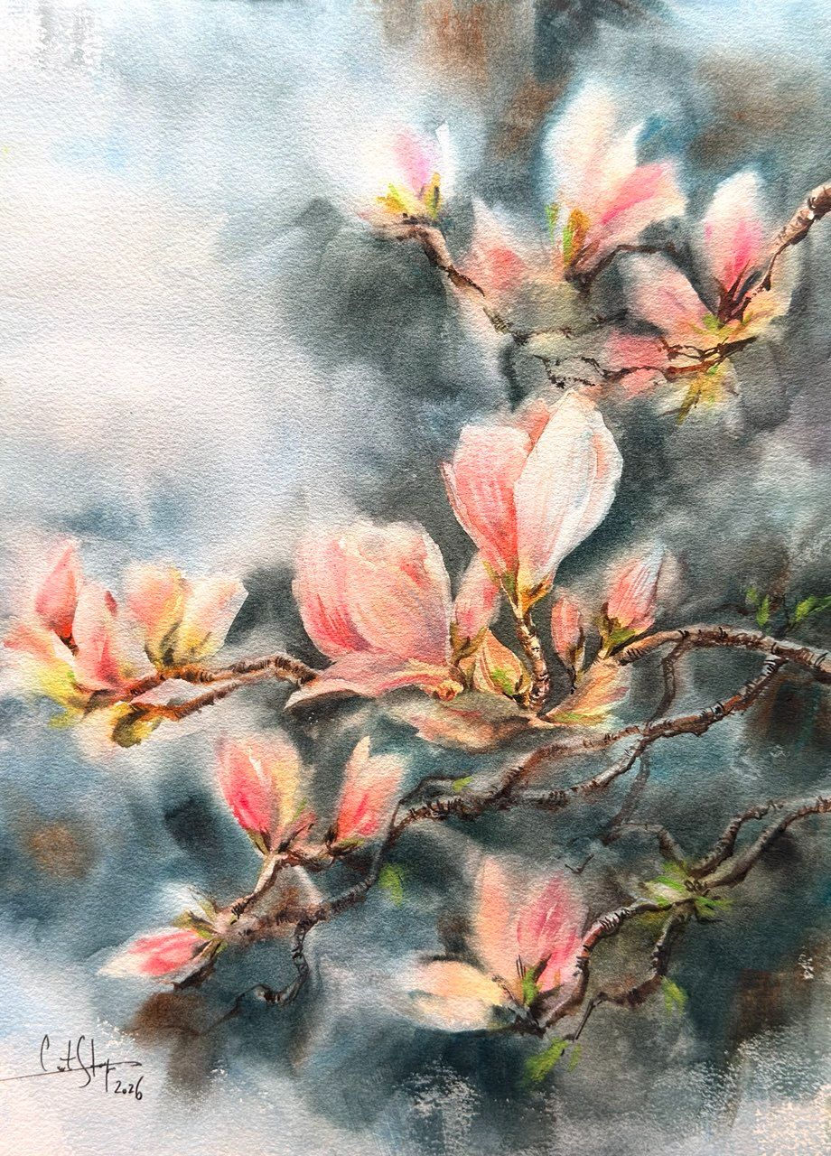 In this live step-by-step watercolor workshop, we will paint a blooming magnolia together. I will guide you through every stage of the painting process, including: