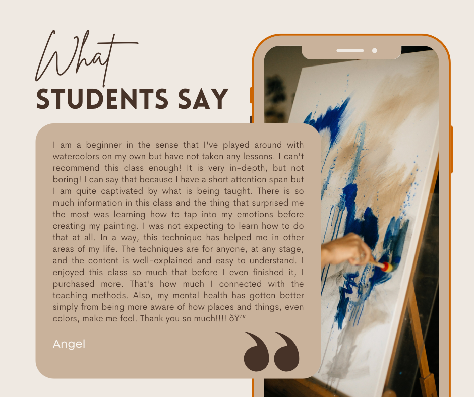 This setup ensures you’re fully equipped for exploring both watercolor and mixed media, but again - if you don't have something, you will able to create in this class with materials you have.