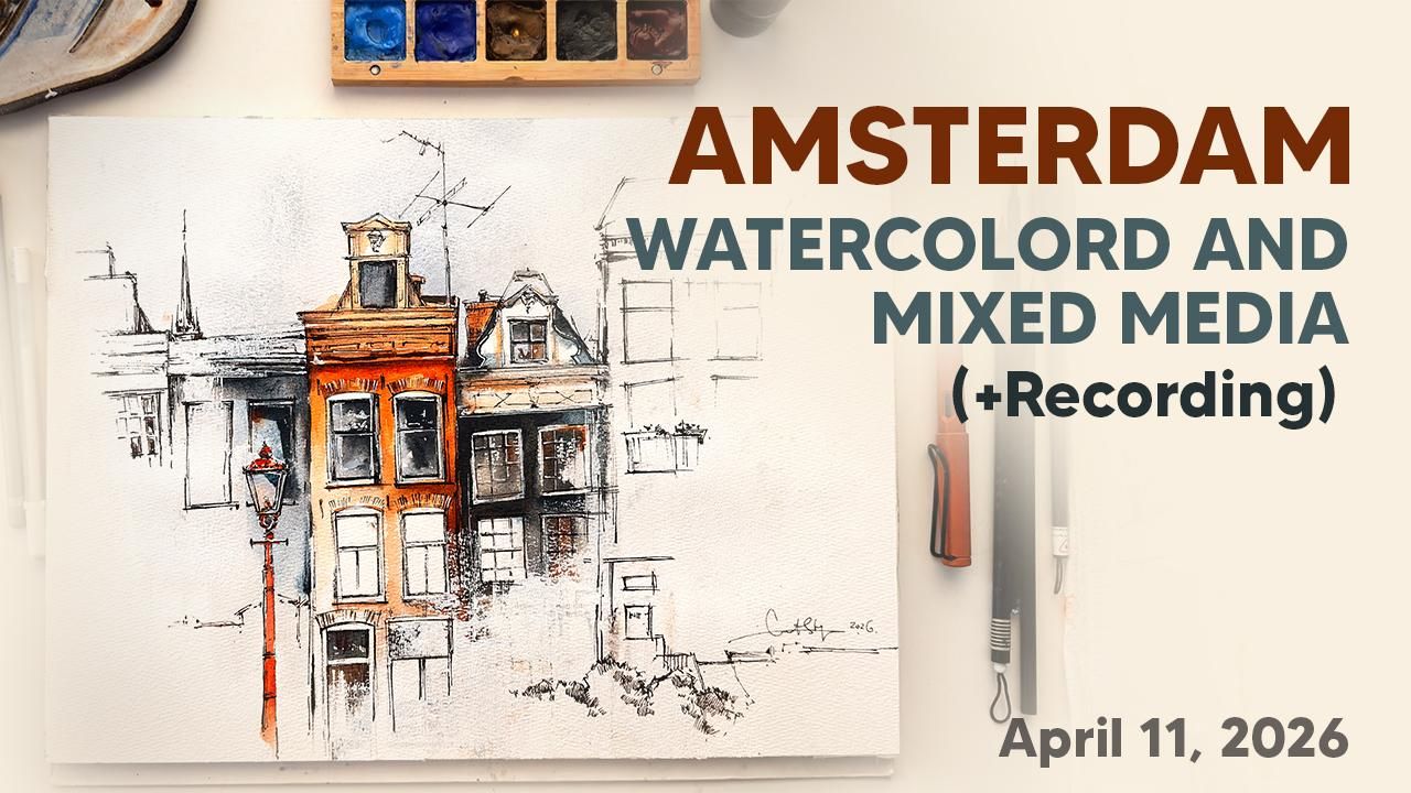In this lesson, we work with a beautiful Amsterdam architectural scene and explore a powerful approach that helps you bring structure, unity, and a clear focal point into your work — without losing the light, expressive feeling of watercolor.