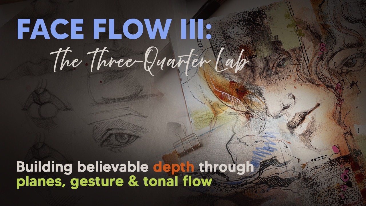 "Face the Flow" is a four-session portrait journey designed to help you understand faces through structure, light, flow, and expressive mixed media.