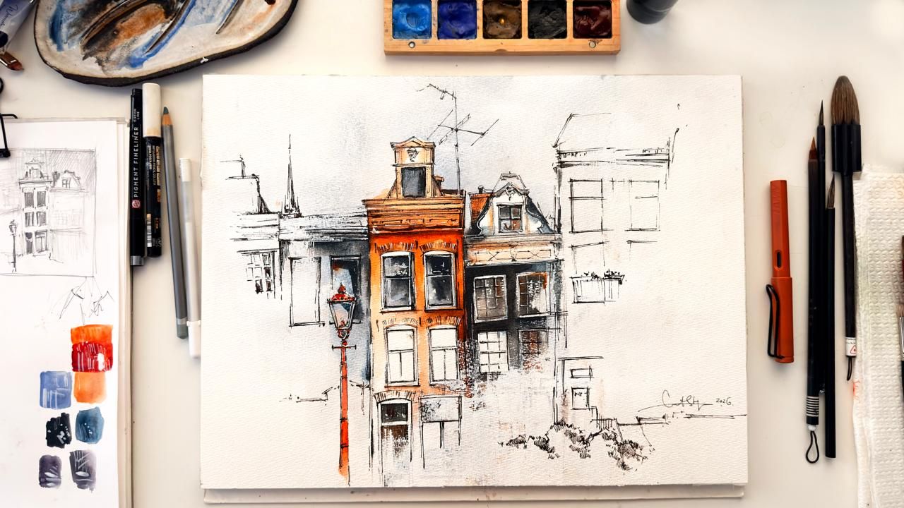 Amsterdam β€” Watercolor & Mixed Media lesson